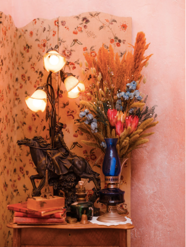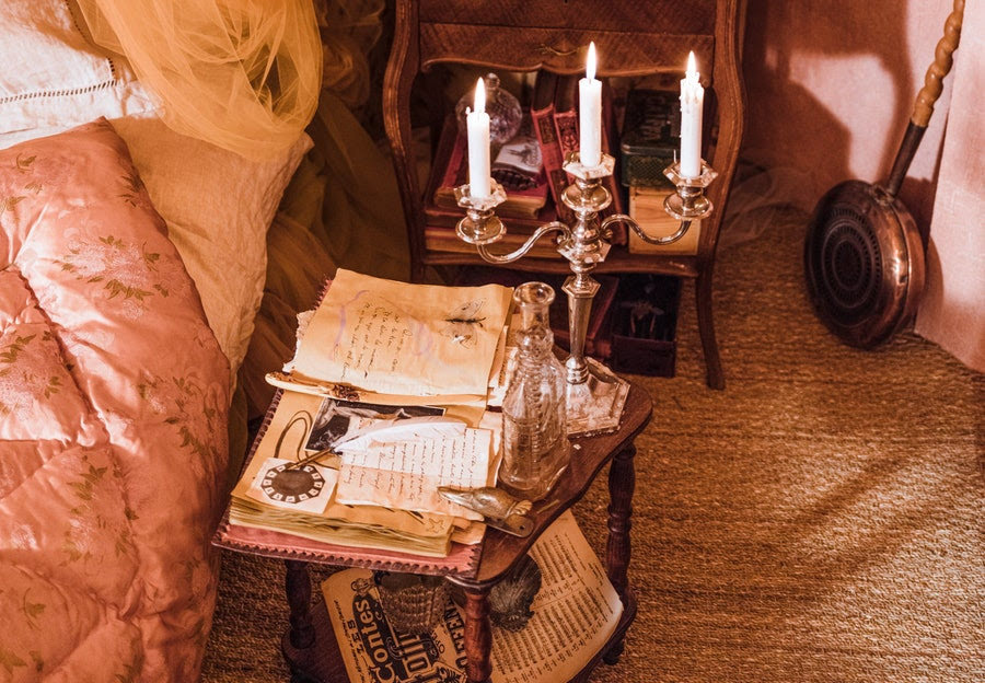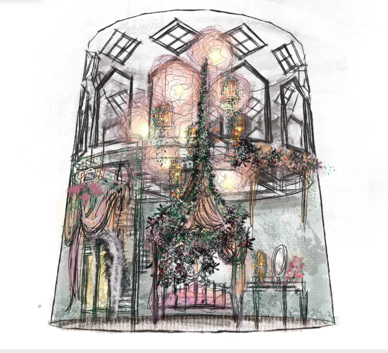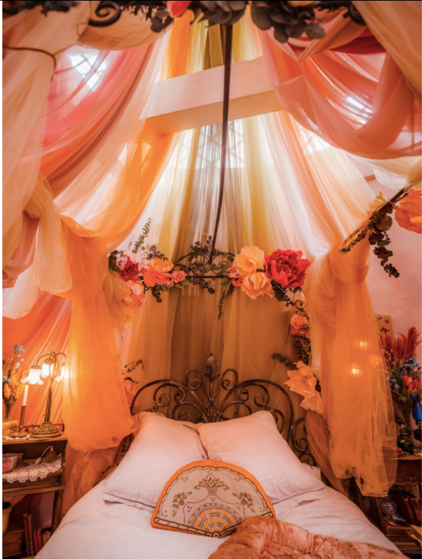 A Belle Époque inspired bedroom in the windmill of the Moulin Rouge, Paris.
